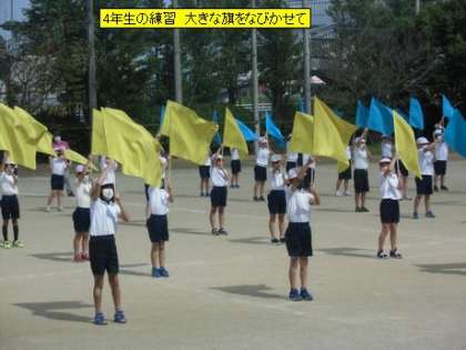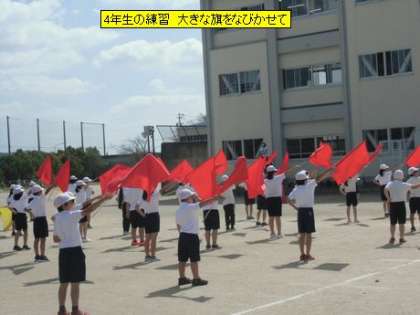 4年生の練習 大きな旗をなびかせて