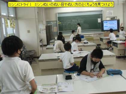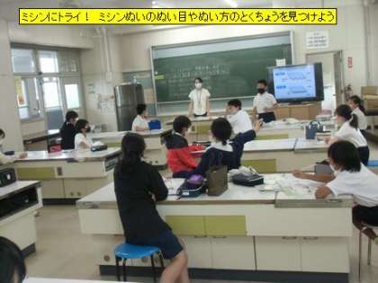 家庭科 ミシンにトライ!ミシンぬいのぬい目やぬい方のとくちょうを見つけよう(5年3組)