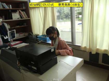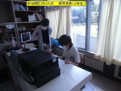 今日で前期が終了し、1年の半分が終わることになります。区切りの式では、2年生・4年生・6年生の代表児童の皆さんが、前期を振り返って意見発表をしました。3人の意見発表に共通していることは、「誰かのために」「みんなの役に立ちたい」という気持ちでした。3人とも、後期の目標としてがんばってくれると思います。とても立派な意見発表でした。、