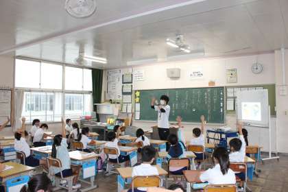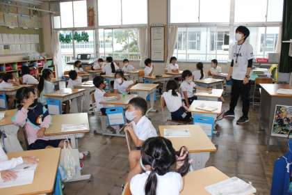 ちょっとした言葉の違いについて話し合っていました。例えば、「見る」と「見つめる」では、どう違うのか、友達と実際に動作化して確かめていました。