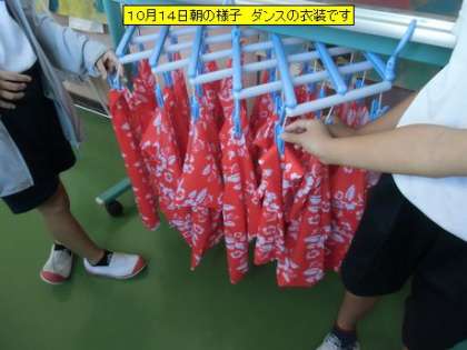 校舎を回ると、トイレのスリッパがきれいに揃っていました。見ていて気持ちがいいです。2年生の教室には、スポーツフェスティバルのダンスで身に付ける衣装が用意されていました。これを身に付けると、またモチベーションも上がりますね。6・7・8組では朝の体操が始まる所でした。今日も、1日がスタートしました。