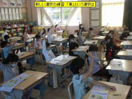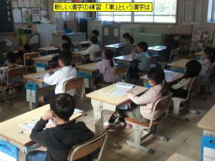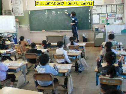 国語 新しい漢字の練習 「車」という漢字は(1年4組)