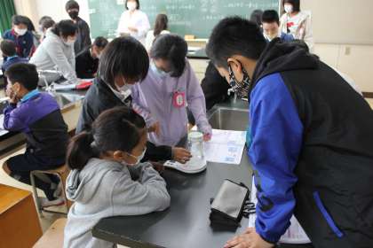「もののとけかた」の学習をしていました。ものが溶ける前と溶かした後の重さはどうなっているのか、予想して、実験していました。