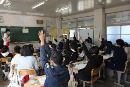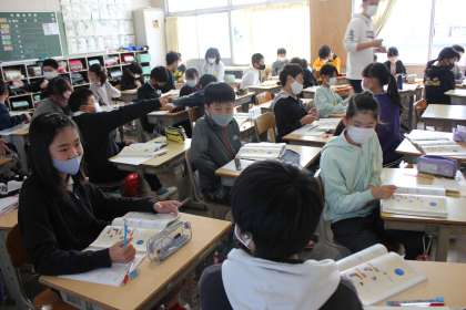 変形しているプールの体積を求めていました。おおよその体積には、「約」を付けて答えることを確認していました。