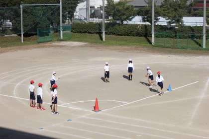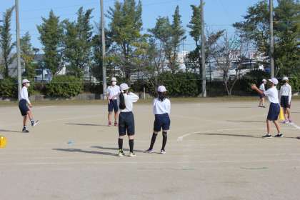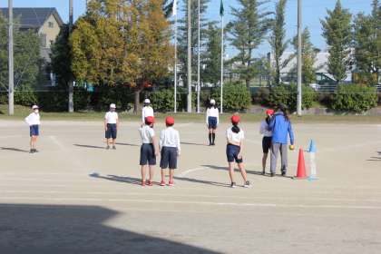 今日から、ハンドベースの学習が始まりました。ボールの投げ方やどう動くか先生から説明をしてもらい、練習をがんばっていました。