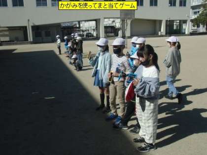 理科 かがみを使ってまと当てゲーム(3年3組)