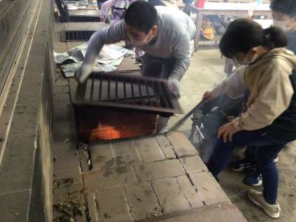 山の学習 かまどと流しの後片付け