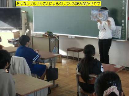 今日は、おはなしプルプルさんによる読み聞かせがありました。久しぶりの読み聞かせで、子どもたちは身を乗り出すように絵本のお話を聞いていました。