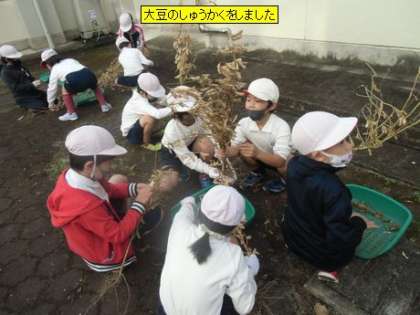 総合 大豆のしゅうかくをしました(3年2組)