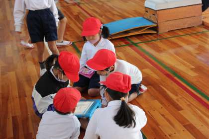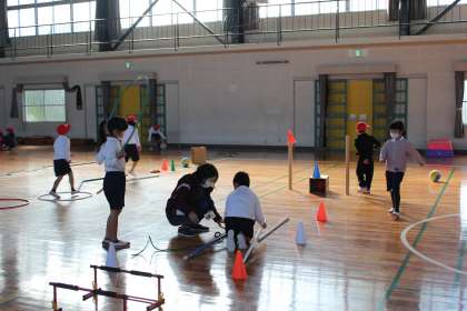 いろいろな器具を使い、自分たちでコースを作っていました。友達と相談しながら、よりよいコースを作って活動していました。