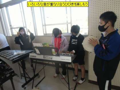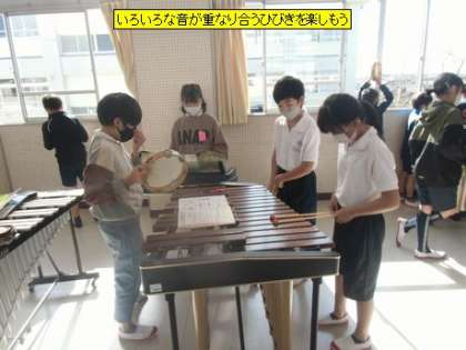 音楽 いろいろな音が重なり合うひびきを楽しもう(5年3組)