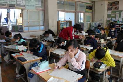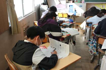 資料から読み取れる事実とそこから考えた自分の意見を分けて意見文を書いていました。資料がいくつかあり、それぞれについてどんどん書いていました。