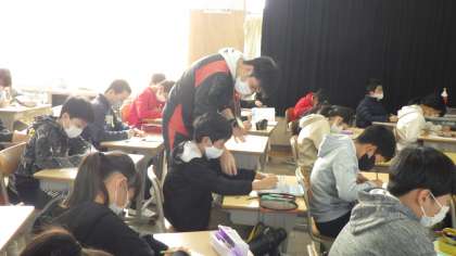 国語「町の幸福論」の学習をしていました。プレゼンテーションを見て、よいところを見付けて発表していました。