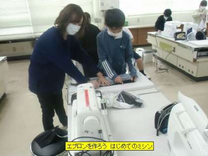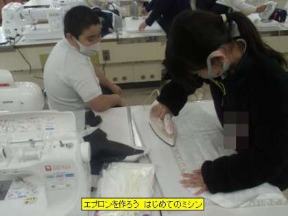 家庭科 エプロンを作ろう はじめてのミシン(5年1組)