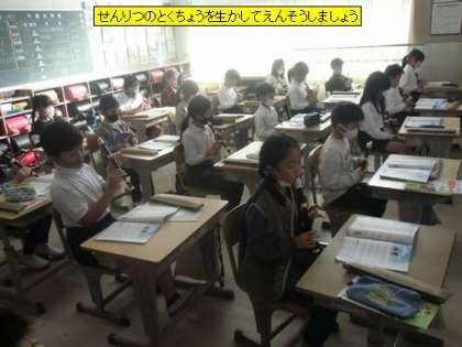 音楽 せんりつのとくちょうを生かしてえんそうしましょう(3年1組)