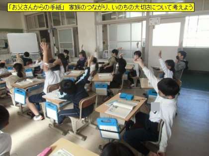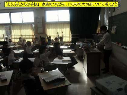 道徳 「お父さんからの手紙」家族のつながり、いのちの大切さについて考えよう(3年2組)