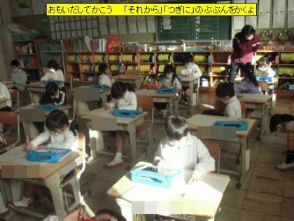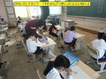 国語 おもいだしてかこう 「それから」「つぎに」のぶぶんをかくよ(1年4組)