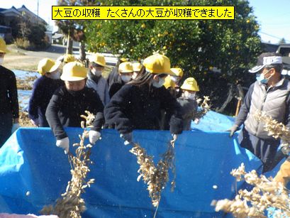 大豆の収穫 たくさんの大豆が収穫できました(3年3組)
