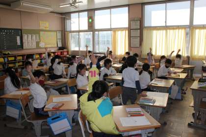1月のカレンダーを作成していました。1月に関係するものを発表して、イラストを描いていました。