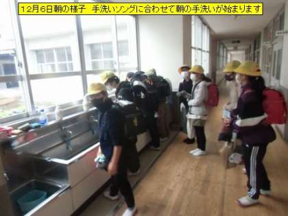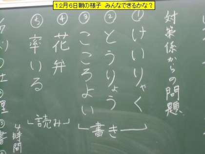 教室を回ると、朝の手洗いソングが流れてくるのが聞こえます。それに合わせて、登校後の手洗いが始まります。2年生の廊下に、ポストが置いてありました。「本のしょうかいカード」への返事を書きます。どんな返事が来るか、子どもたちは楽しみにしているようです。5年生の黒板には、「月例テスト対策班」が考えた問題が書いてありました。みんなで勉強していることが分かります。