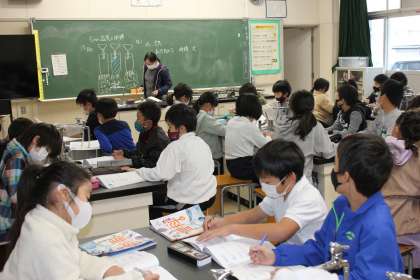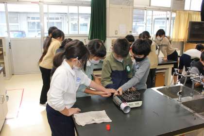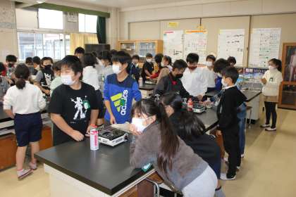 もののあたたまり方の復習をして、ノートにまとめていました。その後、一人ずつガスコンロの使い方を実際に練習していました。