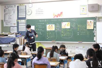 「うまくなりたいけれど」というお話を読んで、自分の意見を伝え合っていました。努力することの大切さなど学ぶことができました。
