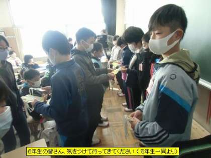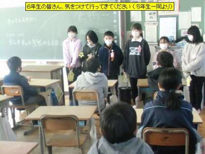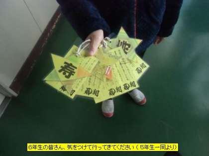6年生の皆さん、気をつけて行ってきてください(5年生一同より)