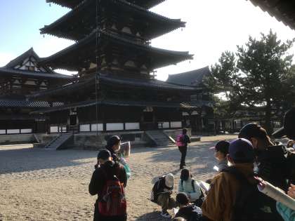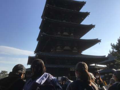 修学旅行1日目 本物の五重の塔にびっくり
