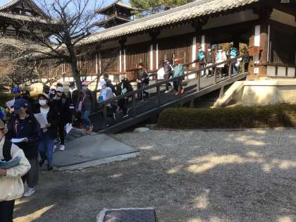 法隆寺の見学を終えて、今から昼食会場に向かいます。「楽しく見学できました」と、感想を話していました。