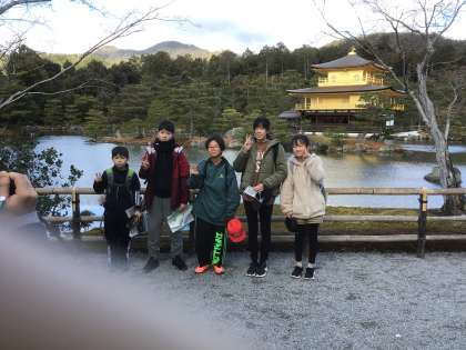 金閣寺をバックにグループ写真を撮りました。金閣寺を見て、あまりの美しさに叫んでいる子がいました。気持ちが伝わってきました。