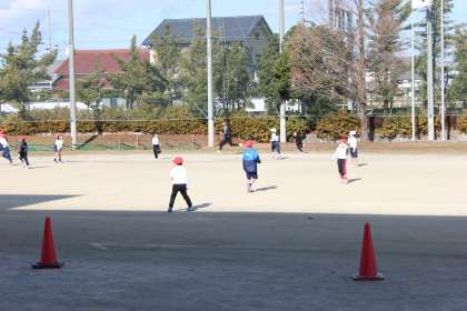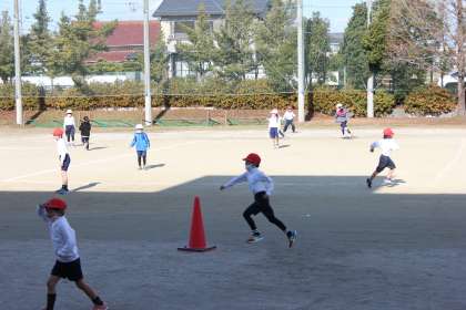 寒い中でしたが、元気よく鬼ごっこをしていました。先生も一緒に活動して、子どもたちも楽しそうに活動していました。