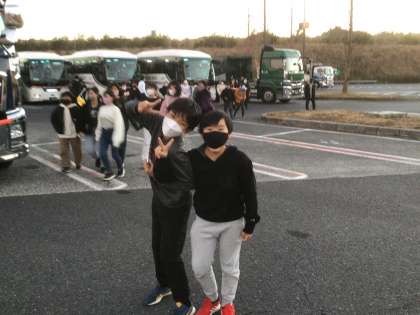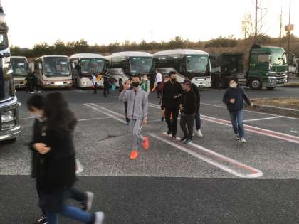 土山SAでトイレ休憩をとりました。みんな元気です。ただ今、学校に向けて出発しました。