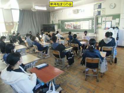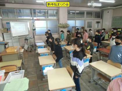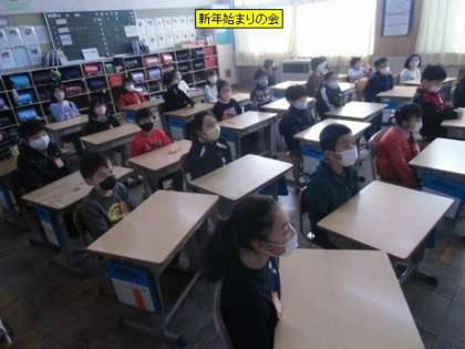 1時間目の授業の前に、リモートで「新年始まりの会」を行いました。校長講話の後、久しぶりに校歌を各教室ごとに3番まで歌いました。校長講話の内容は、後ほど校長室だよりで紹介いたします。どの子も真剣に参加をしていました。