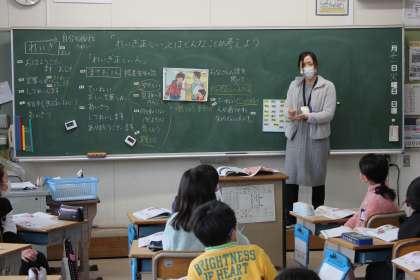 礼儀正しい人とはどんな人なのか、お話を読んで考えていました。どんな人にでも、自然にする、など大切にしたいキーワードが話し合いの中から出ていました。
