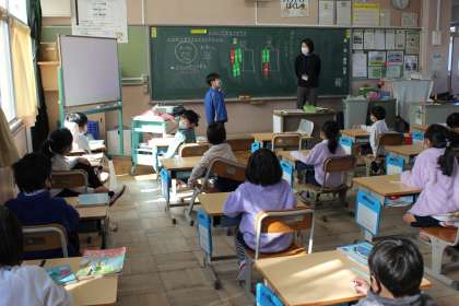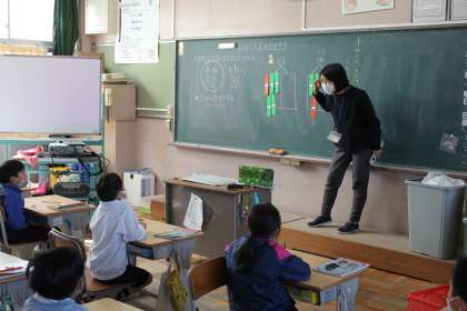 昨日、おはじきゲームを行い、その結果を比べました。どのように比べたらいいか、話し合いました。おはじき王は、91点取れました!