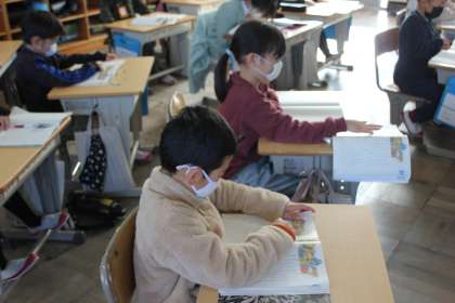 「かさこじぞう」の話をよんで、じいさまの気持ちを考えていました。じいさまのやさしいところを読み取れていました。