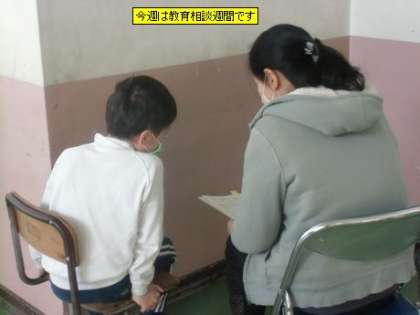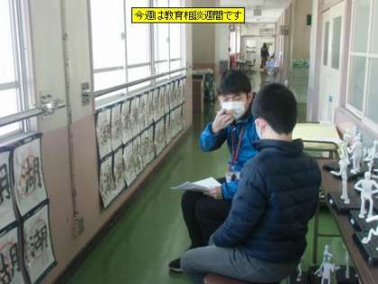 今週は、日課を変更して全校で教育相談を行っています。事前のアンケートをもとに一人ずつ実施していきます。一人一人の子どもに寄り添って支援していきたいと思います。