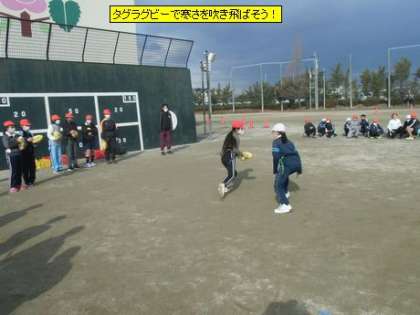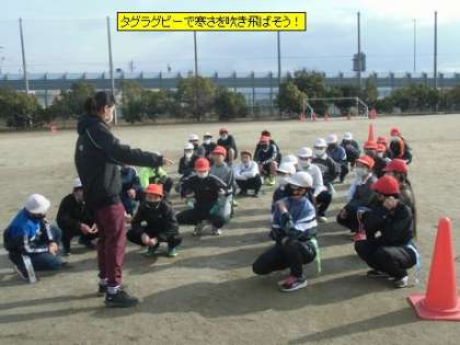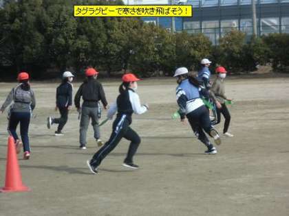 体育 タグラグビーで寒さを吹き飛ばそう(6年3組)