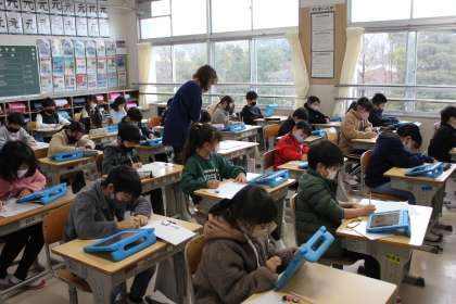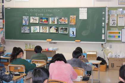 スチレン版画作りに入りました。テーマは、動物です。タブレットを使い、どんな動物を彫ろうか下絵を描いていました。