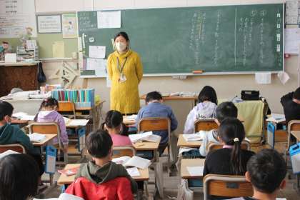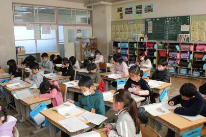 「かさこじぞう」の学習を終えて、面白かったところなど感想を書いていました。今までどんなことを考えたか、思い出しながら書いていました。