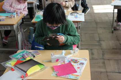 「パタパタストロー」の作品を作っていました。自分の考えたテーマから、色や形を工夫して取り組んでいました。
