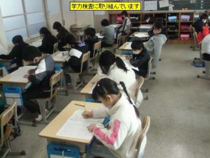 今日は、全校一斉に学力検査に取り組んでいます。子どもたちは、1年間学習して身に付けてきたことを使いながら真剣に問題に取り組んでいます。あきらめずに最後までがんばってください。学力検査は、今日と明日の2日間の予定です。