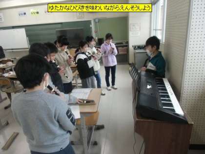 音楽 ゆたかなひびきを味わいながらえんそうしよう(4年3組)