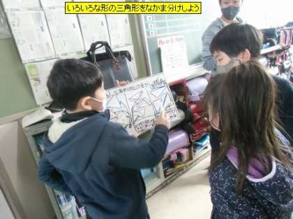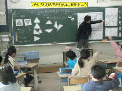 算数 いろいろな形の三角形をなかま分けしよう(3年2組)
