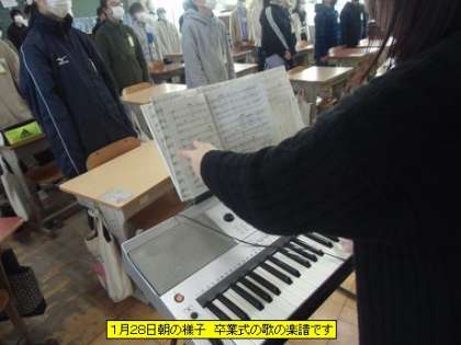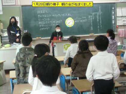 教室を回ると、朝の会が始まっていました。1年生の子も上手に司会をしていました。6年生の教室から卒業の歌が聞こえてきました。小学校で歌う最後の曲です。
