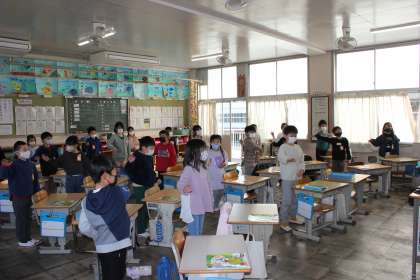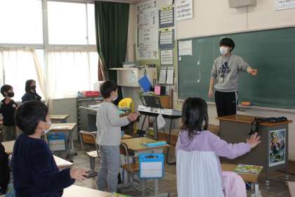 「世界中の子どもたち」の曲に合わせて、体を動かしていました。リズムに乗って楽しく活動していました。