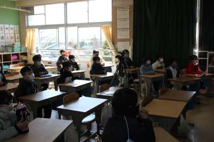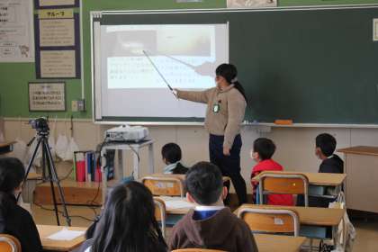 学習発表会に向けての練習をしていました。映像を指しながら、分かりやすい説明をしていました。