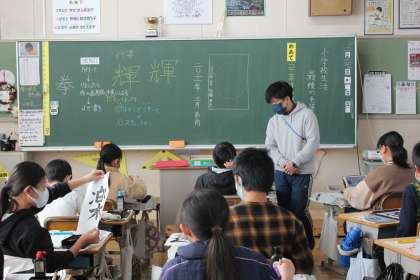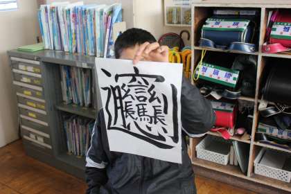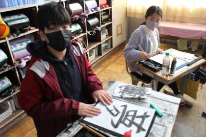 卒業に向けて、自分に贈る一文字を書いていました。一人一人の考えを表現した作品になりました。