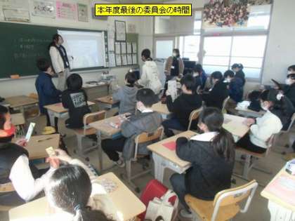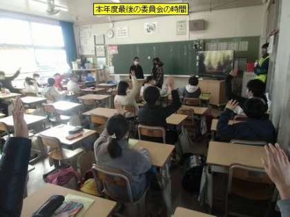 今日の6時間目は、本年度最後の委員会の時間です。計画をして行ってきたことを振り返って、成果や課題をみんなで確認することができました。5・6年生の皆さんのおかげで、コロナで思うように活動できなかった時期はありましたが、みんなで工夫して学校を盛り上げてくれました。ありがとうございました。委員会活動はまだ続きますので、最後までよろしくお願いします。
