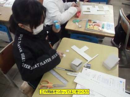 算数 工作用紙をつかってはこをつくろう(2年1組)